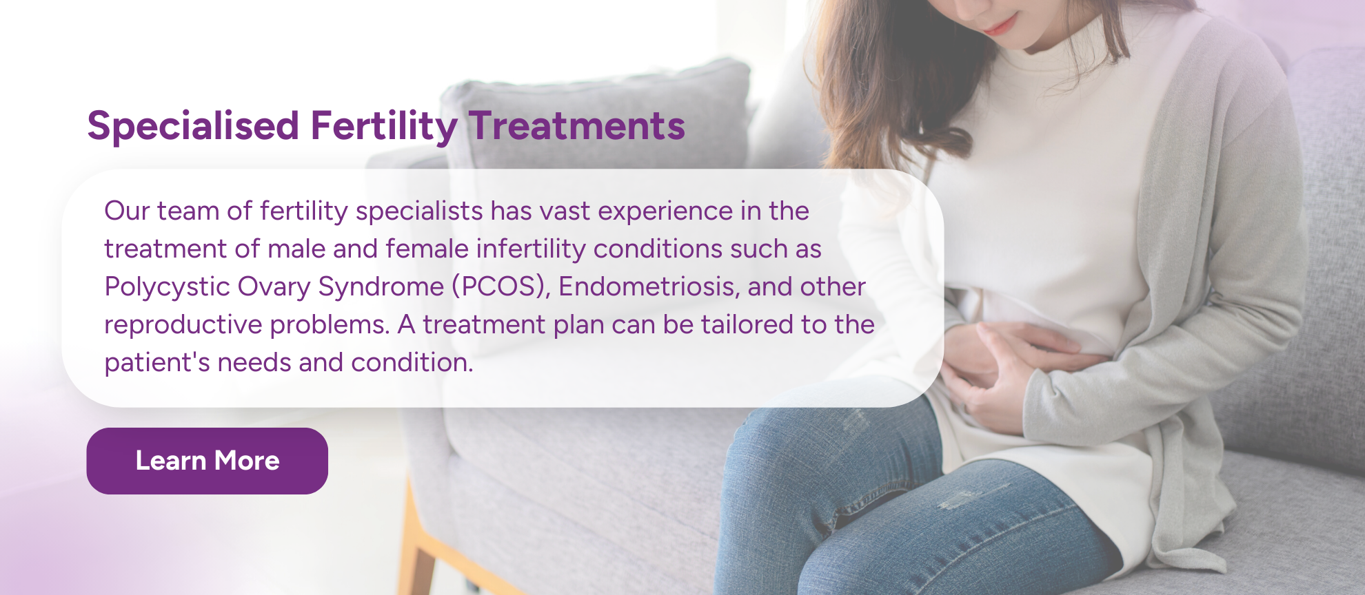 Every couple’s fertility challenges are unique. Our specialists will work with you to tailor our service offering to your needs, inclusive of suitable fertility screening tests and treatment options.